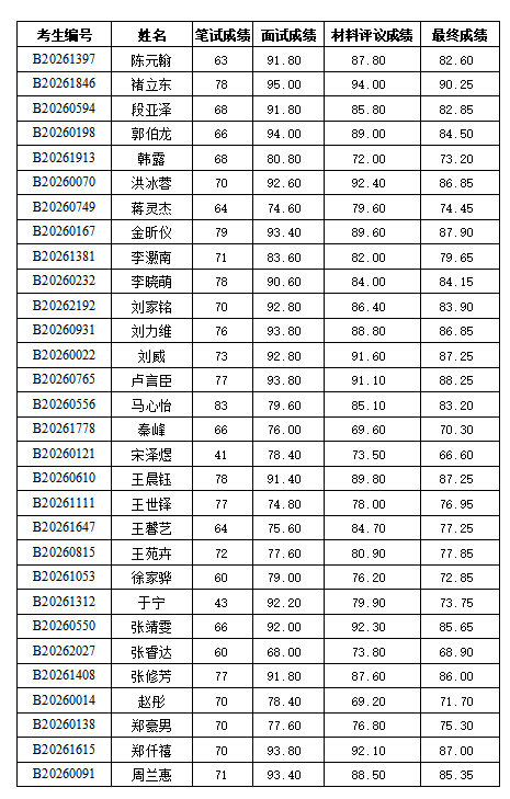 现公示2026年国家安全治理专业方向博士研究生考生综合考核成绩及最终成绩(不含弃考考生)。