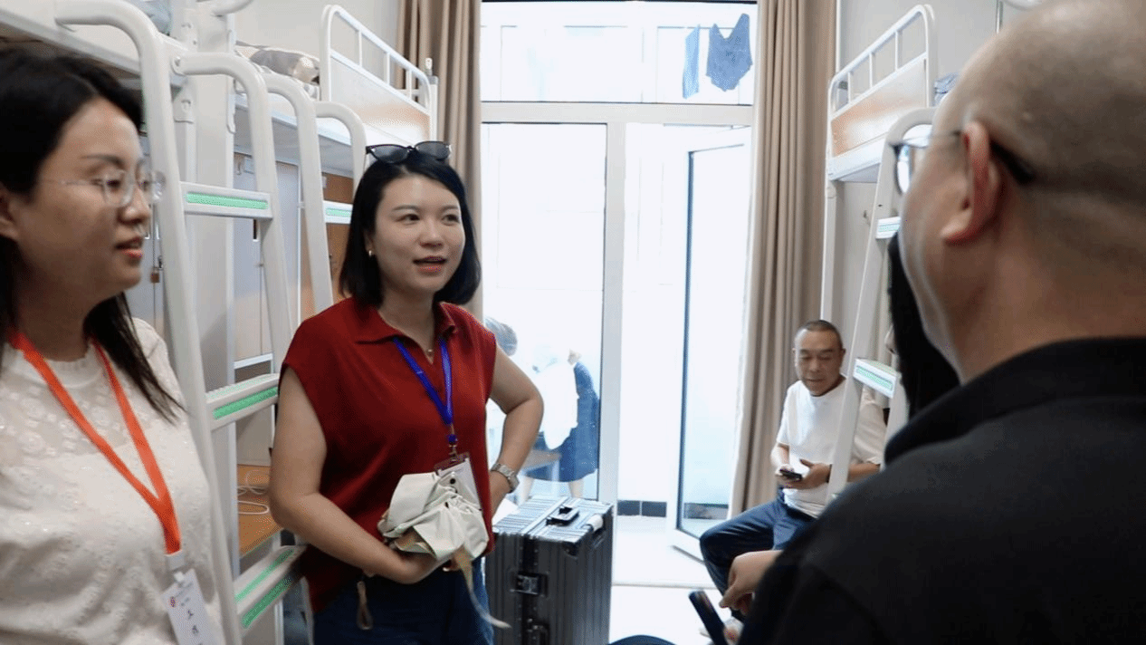 “饮食方面还习惯吗?”“觉得宿舍环境怎么样?”陈钧书记向新生们的到来表示欢迎,并耐心倾听新生到校的感受,回应学生关切,鼓励大家积极面对新环境。李娟老师和李乐怡老师也与各自班级的同学们就今后的学习和生活等问题进行了亲切交流。