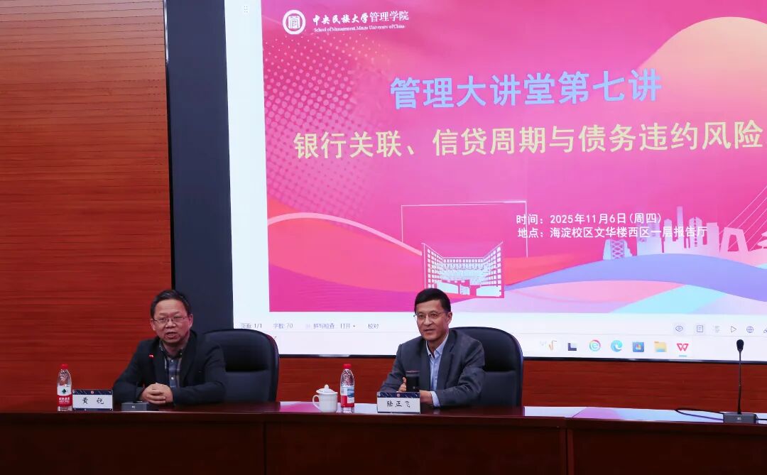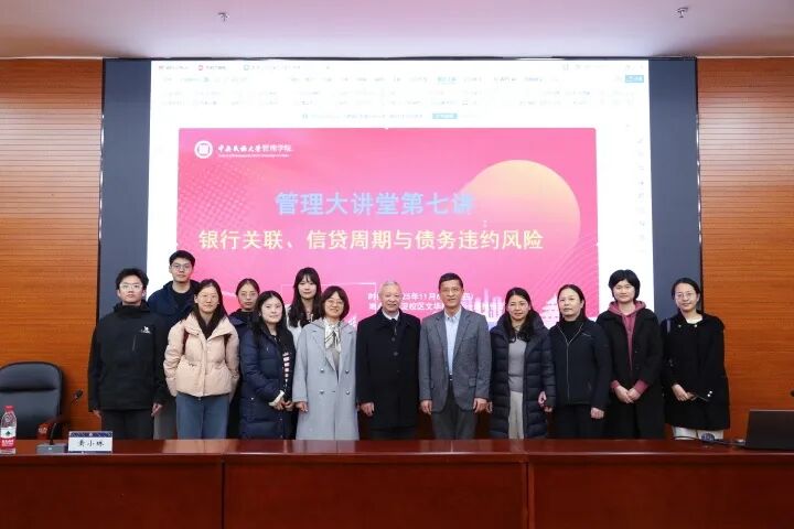 陆教授结合其研究成果《银行关联、信贷周期与债务违约风险》,系统阐述了从理论构建到实证检验的完整研究路径。他从银行关联的实践映射切入,引导师生培养“从现实中提炼学术问题”的具象思维;在分析信贷周期波动的实证观察时,强调“用数据验证逻辑”的实证思维;在讲解债务违约风险的精准研判时,倡导“多维度交叉验证”的辩证思维,层层剖析中既展示了严谨的学术逻辑,也为思维培养提供了具象指引。同时,他分享了自己的治学理念——立足现实找问题、深耕数据挖规律、回归实践验结论,让抽象的学术方法变得可感可学。