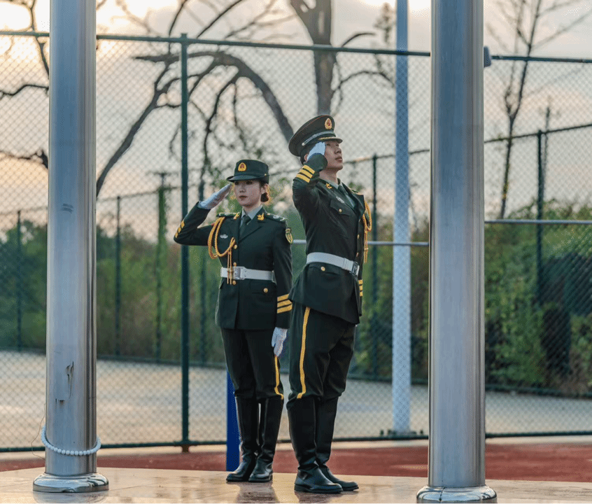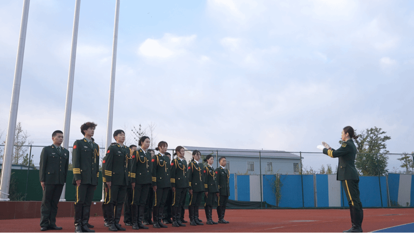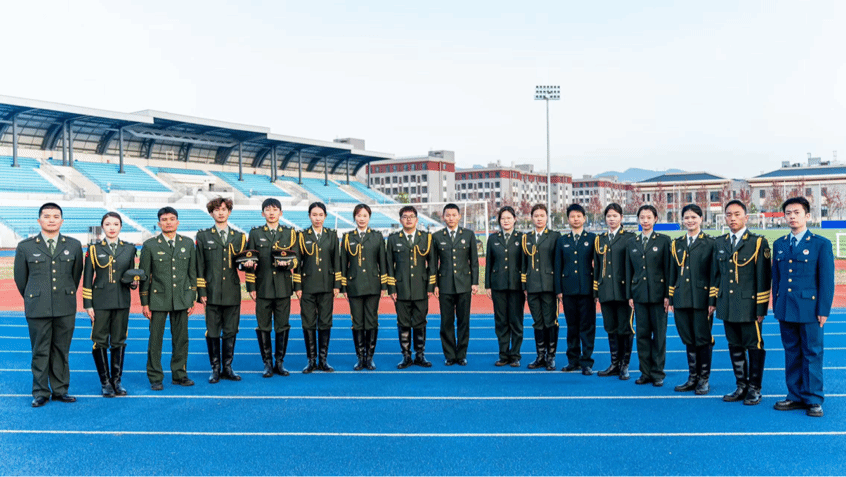 随后,退伍士兵学生为大家带来了精彩的风采展示。他们曾是保家卫国的忠诚卫士,如今则是校园里求知若渴的学子,但在他们心中,那份对国家和人民的忠诚与热爱从未改变。他们用坚定的步伐、整齐的动作和嘹亮的口号,展示了军人的风采和新时代青年的责任与担当。